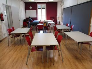 La sala era lo suficientemente amplia para poder llevar a cabo el evento sin problemas. Nos asignaron cuatro del puñado de mesas que había en ella.